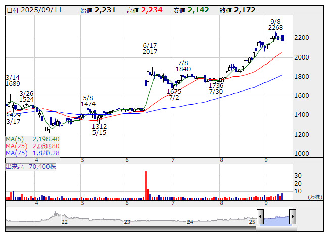 ◆25年10月期第3四半期累計(24年11月-25年7月)の経常利益(非連結)は前年同期比2.0倍の50.3億円に急拡大して着地。併せて、通期の同利益を従来予想の59.4億~66.5億円→66.9億~70.5億円に上方修正した。売上高は計画を下回るものの、コストマネジメントの継続で広告宣伝費を中心とした費用が想定を下回ることが利益を押し上げる。