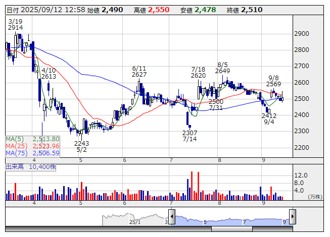 ガーデン <日足> 「株探」多機能チャートより