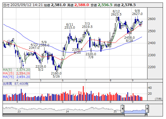 アズワン <日足> 「株探」多機能チャートより■財務省 : 9月12日受付