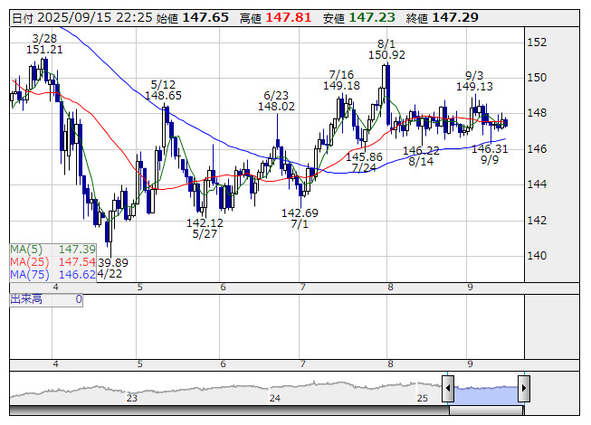 米国債相場は反発。10年債利回りは4.07%から4.03%まで低下した。ドル・円は147円40銭付近から147円23銭まで下落。ユーロ・ドルは1.1773ドルまで上昇し9日来の高値を更新した。ポンド・ドルは1.3620ドルまで上昇し、2カ月ぶりの高値を更新した。