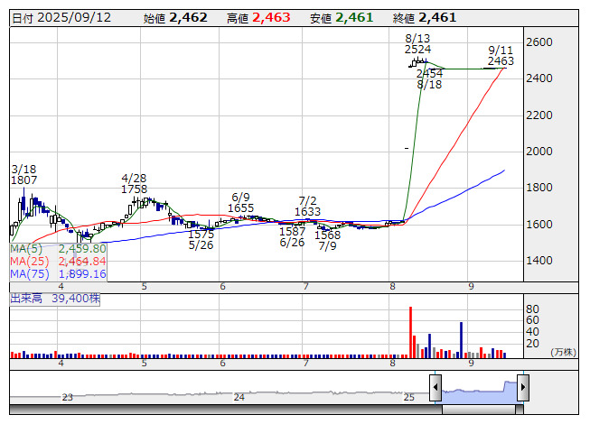 ソフト99 <日足> 「株探」多機能チャートより(東証上場 4251 銘柄対象[ETF、REIT含む])