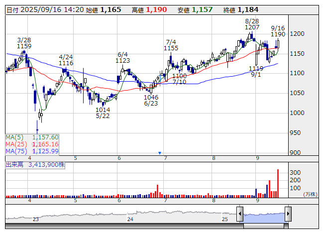 ザ・パック <日足> 「株探」多機能チャートより■財務省 : 9月16日受付
