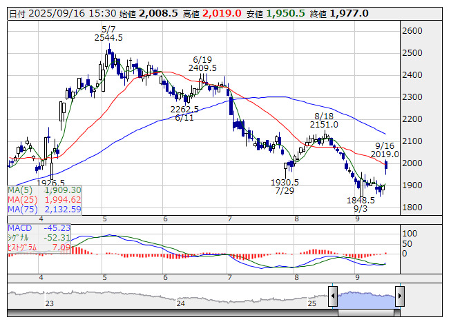 <3635> コーテクHD 1977 +76 ( +4.0%) -45.2
