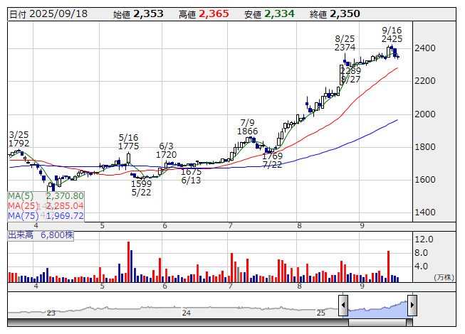 このほか、上期配当の権利付き最終日を今月26日に控え、配当利回りが3.5%を上回っている、東洋テック <9686> [東証S](3.86%)、アジアパイルホールディングス <5288> [東証P](3.83%)、フジ住宅 <8860> [東証P](3.96%)、アーレスティ <5852> [東証P](3.62%)、極東貿易 <8093> [東証P](3.88%)、サクサ <6675> [東証S](4.66%)は株主還元の切り口からも注目したい。