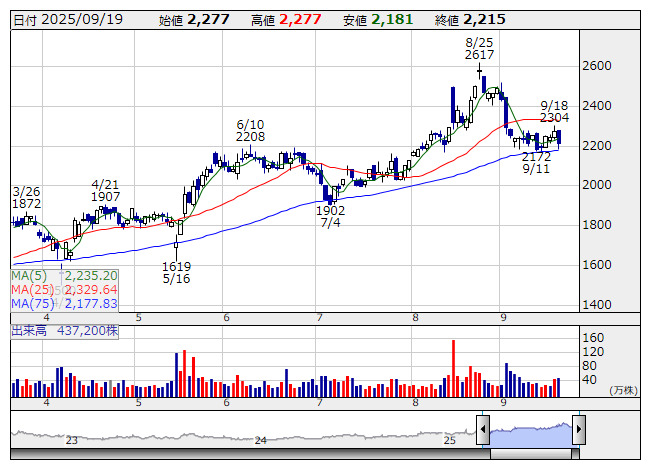 エムアップ <日足> 「株探」多機能チャートより■財務省 : 9月19日受付