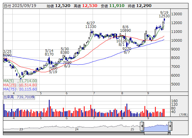 芝浦 <日足> 「株探」多機能チャートより■財務省 : 9月19日受付