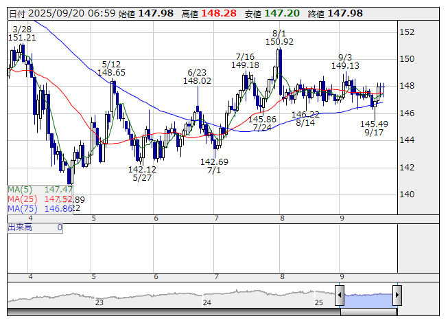 予想レンジ:146円00銭-150円00銭