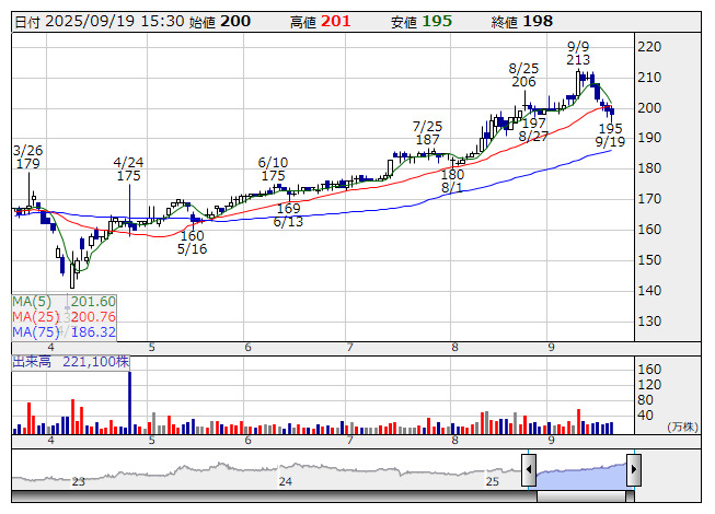 KYORIT <日足> 「株探」多機能チャートより少額資金で投資できる銘柄に対する個人投資家の関心は高い。SBI証券、楽天証券、GMOクリック証券のネット証券3社が株式の売買手数料無料化を打ち出すなど、投資家は手数料を気にせずに売買することが可能となっている。最低投資金額(株価×売買単位)が低位の銘柄は、同じ予算でも高株価の銘柄に比べ株数を多く購入できるほか、買い付けや売却の時期を分散できるなどのメリットがある。ただ、業績低迷が続いている企業も数多くあることには注意が必要だ。