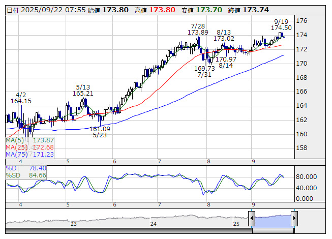 ユーロ/円 <日足> Slowストキャス 「株探」多機能チャートよりユーロ・ドルは、1.0341ドル(2017/01/03)まで下落したが、1.2537ドル(2018/02/18)まで上昇。その後、0.9536(2022/09/28)まで反落したが、2024年にかけて1.1ドル台まで戻している。ユーロ・円は英国民投票で欧州連合(EU)からの離脱が決定し、一時109円57銭(2016/06/24)まで急落。その後137円50銭(2018/2/2)まで買われたあと、長期間伸び悩んだが、日欧金利差の拡大や円安・ドル高の進行を受けて175円16銭(2024/7/10)まで上昇。ただ、その後は上げ渋っている。ユーロ圏諸国における政治不安は消えていないが、日本とユーロ圏の金利差が短期間で縮小する可能性は低いため、リスク回避的なユーロ売り・円買いがすみやかに拡大する可能性は低いと予想される。