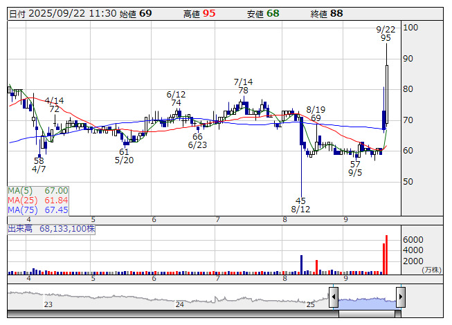 【材料】前場のランキング【値上がり率】 (9月22日)