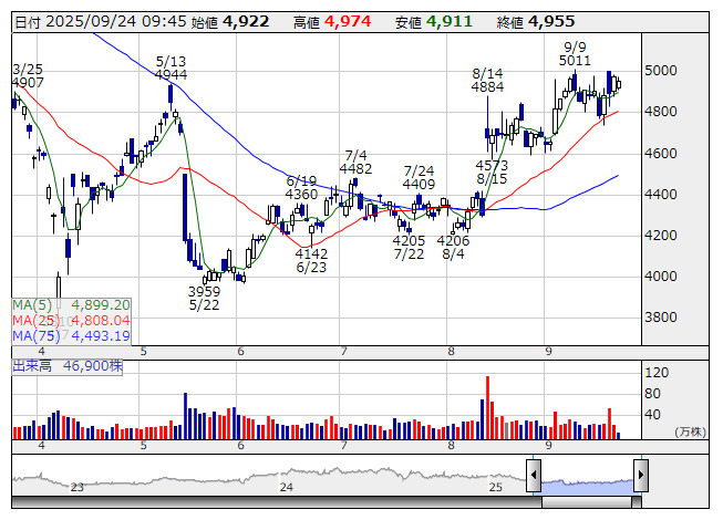 日電子 <日足> 「株探」多機能チャートより■財務省 : 9月24日受付