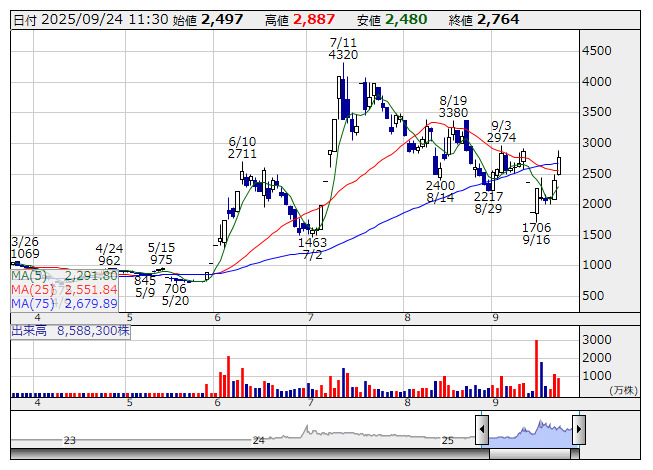 <6070> キャリアリンク 2591 +192 ( +8.0%)