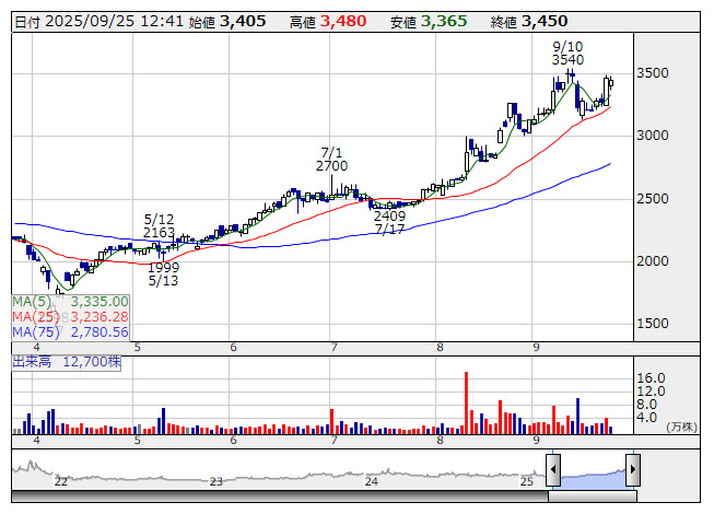 2025年09月25日12時41分 【材料】ロボペイがプラスに浮上、記念株主優待を実施へ ロボペイ <日足> 「株探」多機能チャートより ROBOT PAYMENT<4374>が後場プラス圏に浮上している。午前11時30分ごろ、記念株主優待を実施すると発表したことが好感されている。 10月23日に創業25周年を迎えることを記念して実施するもので、26年3月末日時点で1単元(100株)以上を保有する株主を対象にデジタルギフト3000円分を贈呈する。 出所:MINKABU PRESS