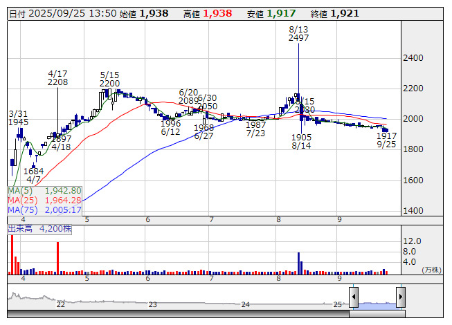 ベイシス <日足> 「株探」多機能チャートより■会社概要