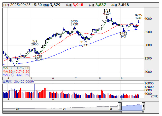 <7011> 三菱重工業 3848 -30 ( -0.8%) 3757.0 3742.2