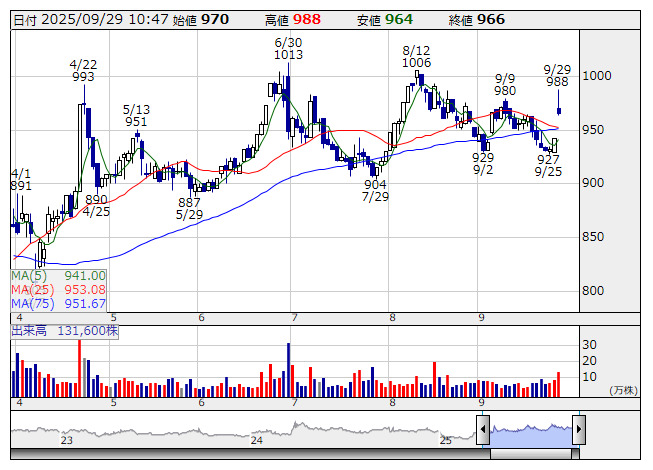 2025年09月29日10時50分 【材料】オークワが3日続伸、上期業績は仕入れ原価低減などで各利益が計画上振れ オークワ <日足> 「株探」多機能チャートより オークワ<8217>が3日続伸している。前週末26日の取引終了後、集計中の8月中間期連結業績について、営業利益が従来予想の3億円から5億7000万円(前年同期比2.3倍)へ、純利益が1億円から2億4000万円(同2.8倍)へ上振れて着地したようだと発表したことが好感されている。 売上高は天候不順や競合環境の影響により1265億円から1244億円(同1.5%増)へ下振れて着地したものの、商品仕入れ原価の低減や業務の見直しによる販管費の抑制に努めたことで各利益は上振れた。 出所:MINKABU PRESS