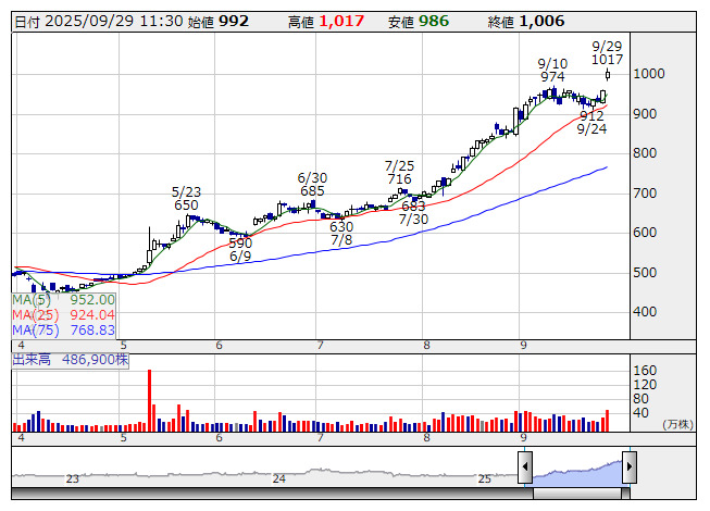 ELEMENTS<5246>=大幅反発。画像解析及び顔認証など生体認証を活用したクラウド型本人確認サービスなどを手掛けており、金融機関向けを中心に需要を開拓している。前週末26日取引終了後、総務省の「デジタルインフラ整備基金助成事業」の公募に同社グループ会社が実施事業者として採択されたことを発表、これを材料視する形で投資資金が集中した。