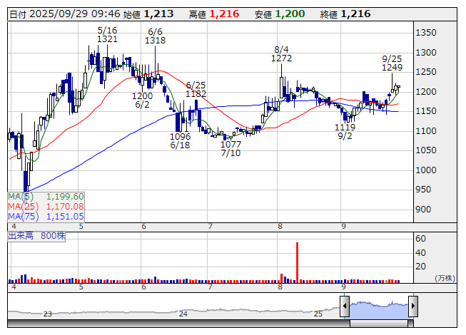 葉ガス <日足> 「株探」多機能チャートより■財務省 : 9月29日受付