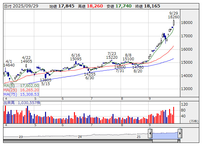 キオクシア <285A> 4,920 +245 ( +5.2%) 221,500 (109,088) 219,500 (107,994)