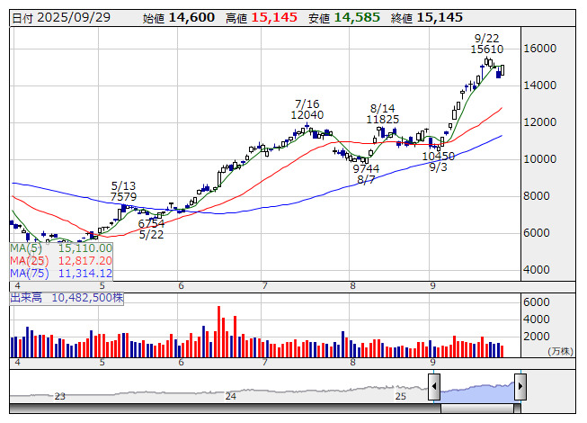 アドテスト <日足> 「株探」多機能チャートより(東証上場 4243 銘柄対象[ETF、REIT含む])