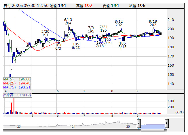 財務面では、在庫削減を強力に進めたことで棚卸資産が792百万円減少し、営業キャッシュフローは1,370百万円と前年並みを確保した。また、資本性劣後ローン30億円のうち6億円を期限前弁済するなど、財務体質の健全化に注力している。こうした取り組みは将来の財務柔軟性を高めると同時に、資本市場における信用力改善にもつながる。通期業績予想は売上高21,300百万円(前期比3.4%減)、営業利益1,400百万円(同37.7%減)と減収減益見通し。