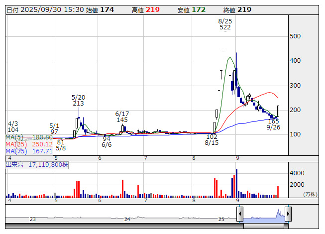 1. <6177> アップバンク 東証G 25.9 219 S 仮想通貨関連