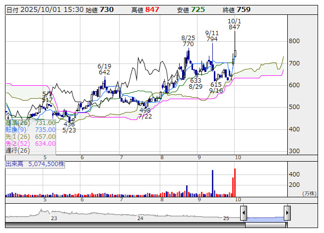 <9227> マイクロ波化学 759 +39 ( +5.4%) 20