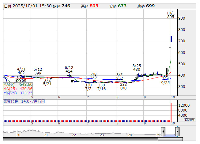 【材料】本日のランキング【売買代金 増加率】 (10月1日)