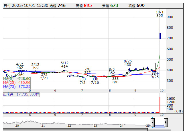 1. <4446> リンクユーG 東証P 41687倍 (41,687) 699 ( +8.2 ) 前日はストップ高配分で約定は1回