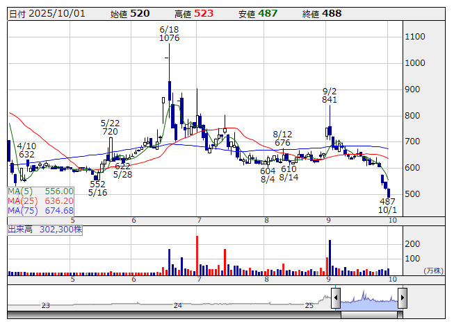 フォーシーズ <日足> 「株探」多機能チャートよりフォーシーズHD<3726>は30日、2025年9月22日に開催された「まなべびアワード2025」において、グループ企業が展開する3つのブランド商品が「まなべびアワード」を受賞したと発表した。