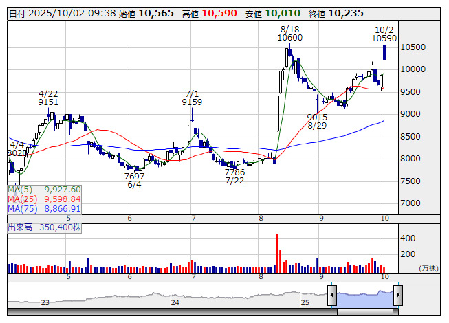 2025年10月02日09時38分 【材料】ゼンショHDは続伸、すき家の9月既存店売上高6.3%増と伸び率拡大 ゼンショHD <日足> 「株探」多機能チャートより ゼンショーホールディングス<7550>が続伸している。同社は1日、すき家の9月度月次売上(速報値)を公表。既存店売上高は前年同月比6.3%増となり、前月の伸び率(3.9%増)から拡大したことが好感されているようだ。 既存店の客単価が同7.3%増となったほか、客数が同1.0%減と前月(4.2%減)から改善したことが寄与した。なお、全店ベースの売上高は同7.6%増だった。 出所:MINKABU PRESS