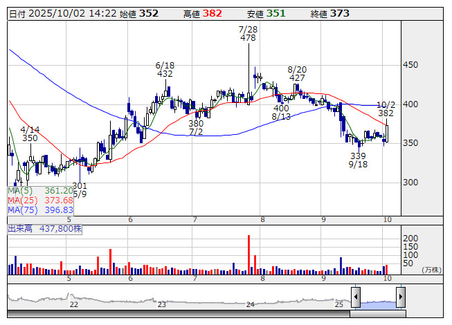 4888>は動意づいている。この日午後2時ごろ、自社製品の新たな製造委託先として選定した国内事業会社(社名非開示)との間で、長期的な安定供給を目的とした製造体制の構築に向けて開発委受託契約を締結したと発表した。既存の委託先の1社と取引が停止することになったため。新たな製造委託先からの製品出荷には製造所移管に伴う医薬品製造販売承認事項一部変更承認申請が必要となり、既に厚生労働省と申請の迅速化を含む協議を始めているという。これが材料視されているようだ。
