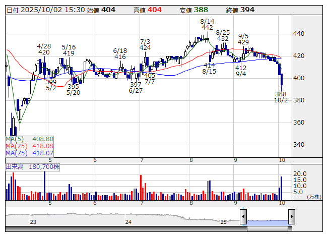 スカラ <日足> 「株探」多機能チャートより■株主還元策