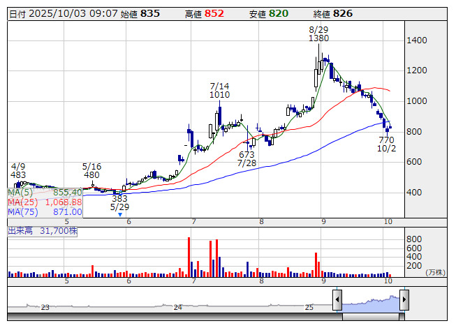 ■サスメド <4263> 857円 +13 円 (+1.5%) 09:07現在