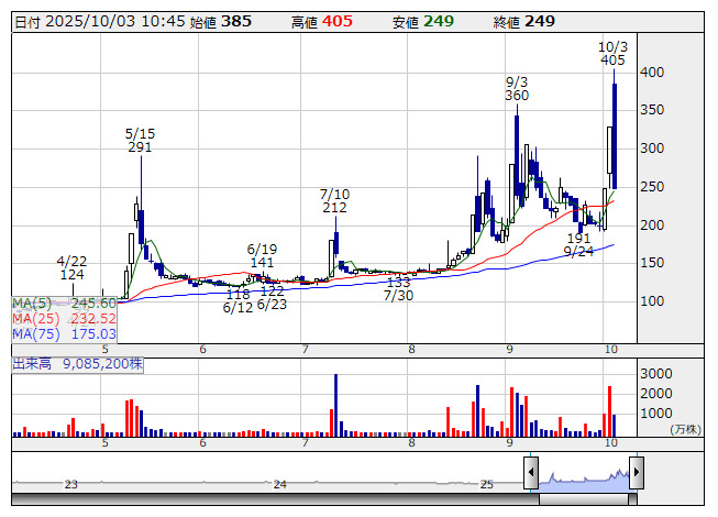 【材料】前場のランキング【値下がり率】 (10月3日)