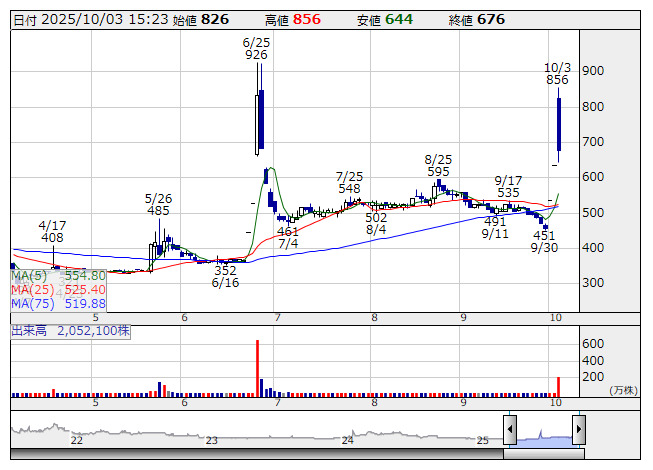 デリバリコン <日足> 「株探」多機能チャートより■財務省 : 10月3日受付