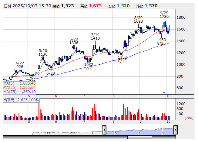 Aiロボ <日足> 「株探」多機能チャートより■財務省 : 10月3日受付