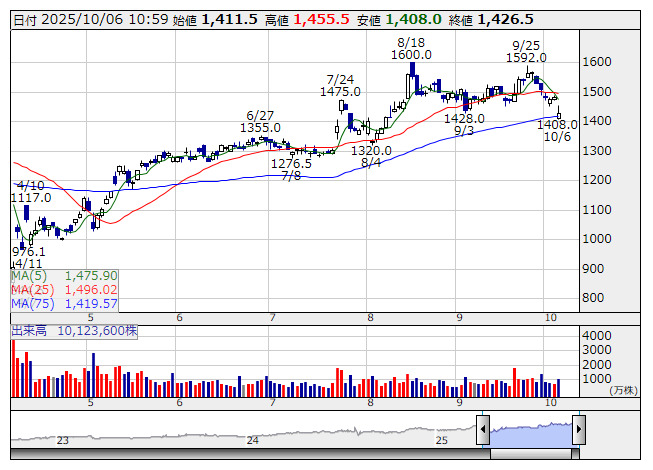 りそなHD <日足> 「株探」多機能チャートより■財務省 : 10月6日受付