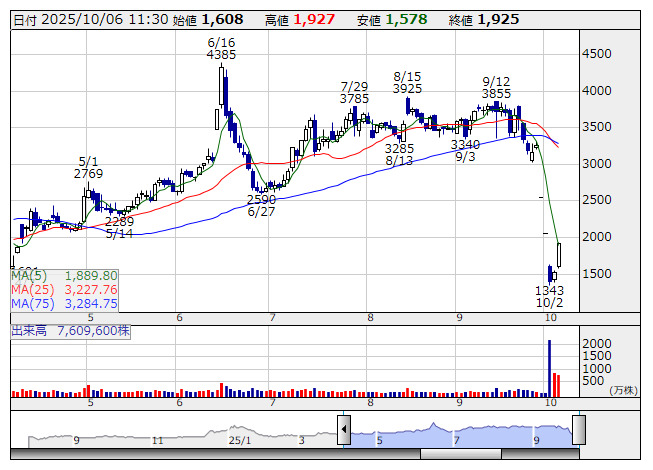 【材料】前場のランキング【寄付からの値上がり率】 (10月6日)