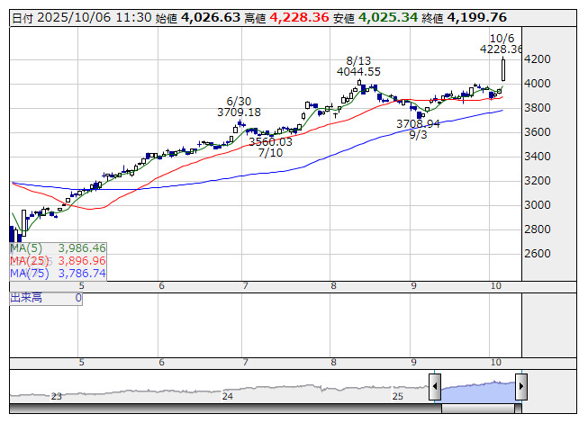 機械 <日足> 「株探」多機能チャートより●東証33業種 値上がり: 32 業種 値下がり: 1 業種