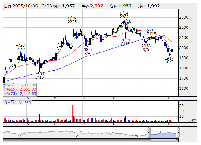 電気興 <日足> 「株探」多機能チャートより■財務省 : 10月6日受付