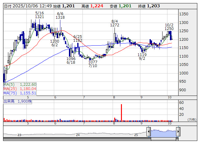 葉ガス <日足> 「株探」多機能チャートより京葉瓦斯<9539>は2日、カーボンニュートラルの促進のため再生可能エネルギー発電事業を担う新会社「KGソーラー1合同会社」の事業を開始したと発表した。