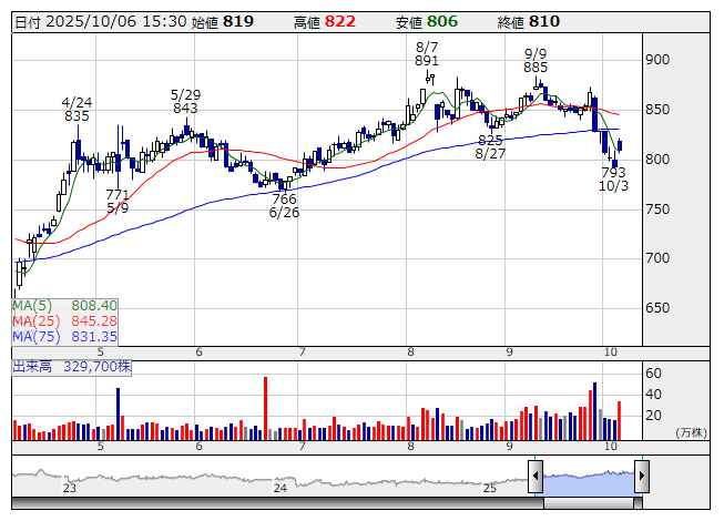 大豊建 <日足> 「株探」多機能チャートより■財務省 : 10月6日受付