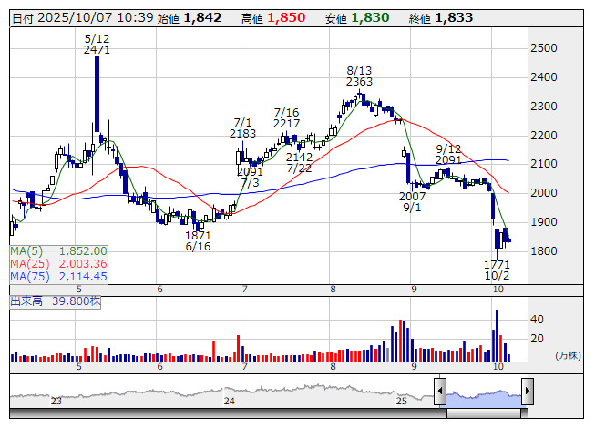 ナガイレーベ <日足> 「株探」多機能チャートよりナガイレーベン<7447>は1日、2025年8月期連結決算を発表した。売上高が前期比3.5%増の169.83億円、営業利益が同10.5%減の35.83億円、経常利益が同9.0%減の37.06億円、親会社株主に帰属する当期純利益が同8.8%減の25.73億円となった。