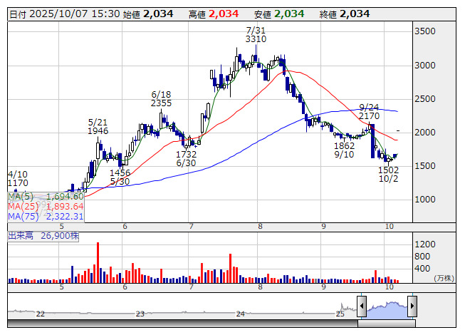 25. <3687> Fスターズ 東証P 7.8 2213 Fスターズなど高い、『逆高市トレード』の手仕舞いによる買い戻しの動き