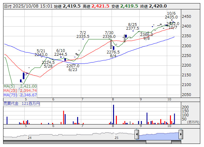 43. <9658> ビジ太田昭 3,005 ( +1.9%) 165 ( 2.7倍)