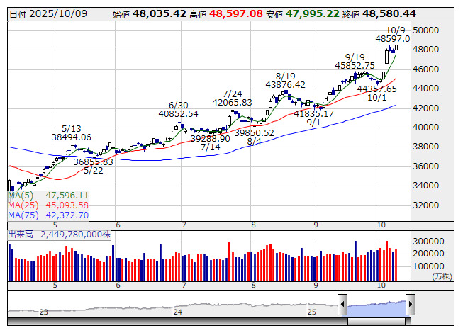 ソフトバンクGの底堅さがみられるようだと、半導体やAI関連株への資金流入が続きやすいだろう。3連休前で利益確定の売りが入りやすい一方で、新政権への期待感から先回り的に買いが入りやすいほか、前日の大幅上昇でレバレッジ型ETFなどのヘッジ対応の調整買いも入りやすいだろう。「高市トレード」を意識したテーマ株を探る動きも続きそうだ。