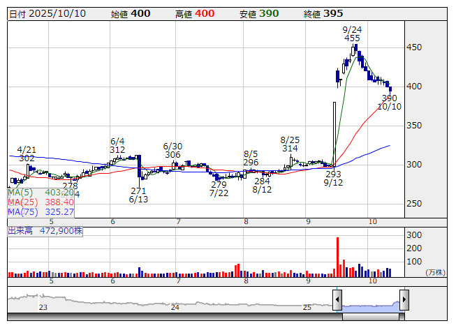 エニグモ <日足> 「株探」多機能チャートより●今週の高利回りランキング【ベスト50】