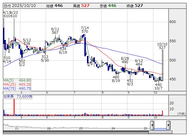 インタファク <日足> 「株探」多機能チャートより銘柄名<コード>10日終値⇒前日比