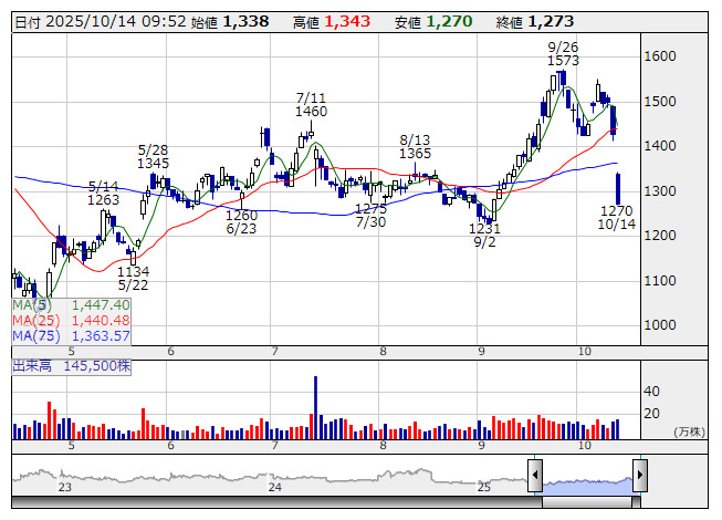 2025年10月14日09時51分 【材料】ADプラズマ大幅続落、26年8月期減収減益へ ADプラズマ <日足> 「株探」多機能チャートより アドテック プラズマ テクノロジー<6668>は大幅続落。前週末10日取引終了後、26年8月期連結業績予想について売上高を116億円(前期比8.5%減)、営業利益を15億8000万円(同12.6%減)と発表した。好調だった前期から一転、減収減益の見通しを示したことが嫌気されている。 配当予想は24円(前期27円)とした。同時に発表した25年8月期決算は売上高が126億8000万円(前の期比12.2%増)、営業利益が18億800万円(同21.8%増)だった。半導体製造装置メーカーからの受注が堅調だった。米関税政策の影響があったものの、一部内製化などの取り組みが奏功した。 出所:MINKABU PRESS